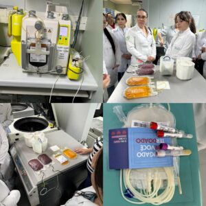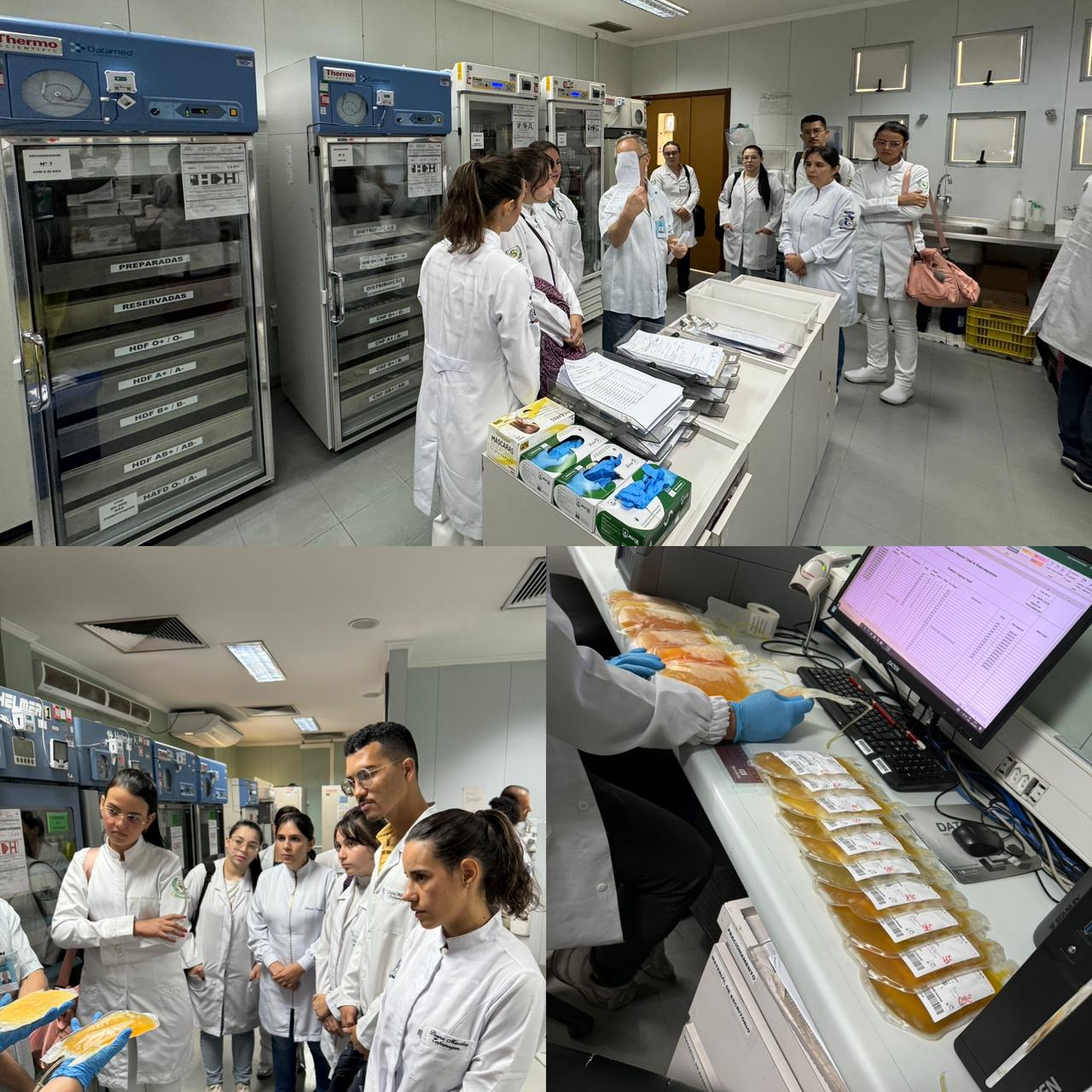 Hoje, alunos em estágio, fizeram uma visita técnica no Hemocentro, para vivenciar todos os processos dos hemoderivados (sangue), acompanhados da Prof. Cristina Ila.
